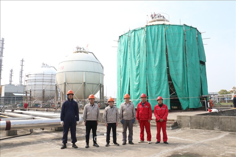 3月初,湖北省特检院直属分院得知金澳科技6台球罐需腾空物料、置换进行定期检验后,为减少对企业生产物料存储和连续性生产造成影响,立即成立以曾一彪检验师为组长的项目部,主动热情为企业提供服务,并到检验现场商讨腾罐计划,决定采取逐台倒罐、检验师连续加班检验等方式满足企业生产所需,公司总裁助理郑经友、设备机动处处长郑玉兵配合检定。