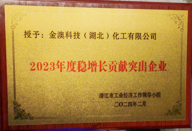金澳科技喜获潜江市“稳增长贡献突出企业”和“年度经济贡献突出企业”两项荣誉