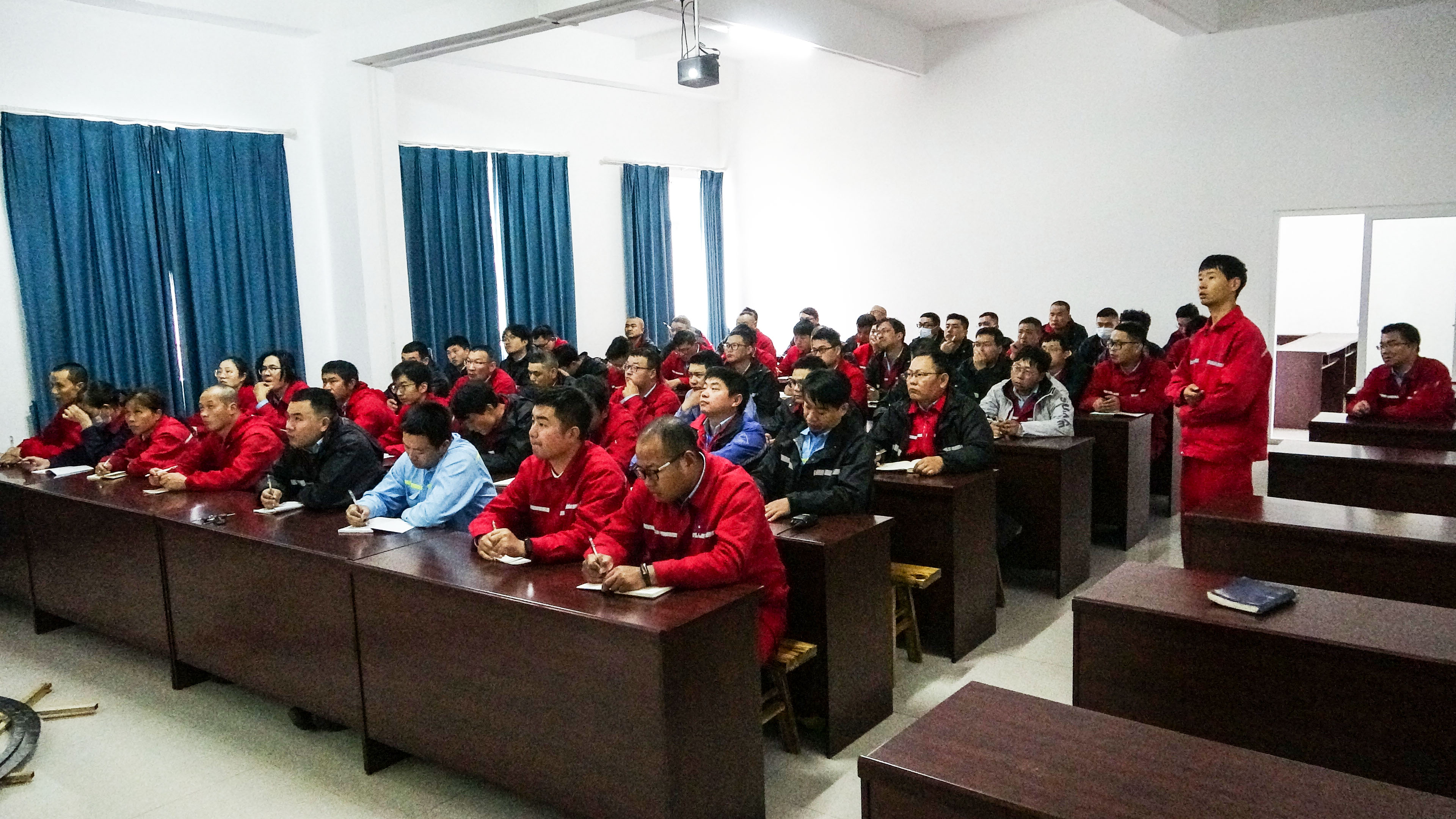 金达化工公司邀请安全环保处职业健康科科长杨青青为员工进行职业卫生知识培训,他从企业贯彻落实职业健康防治法、职业健康防治规划、工作场所监督管理三个方面为大家进行了详细讲解,对正确使用防护设备和防护用品进行了重点介绍;他强调,大家一定要严格按照规范操作,保护好自身的健康和安全。本次培训让员工对职业健康相关知识有了深刻地理解,进一步增强了员工职业健康防范意识。