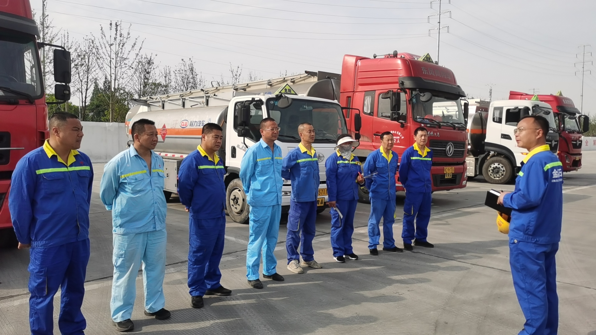 党员、石化公司副总经理龚小军带领油品配送中心开展配送车辆的安全检查工作,在现场强调夏季行车注意事项,要求相关人员在出车前做好日常检查,行驶过程中密切关注道路状况,并在午间合理安排休息时间,以确保车辆和人员的安全。